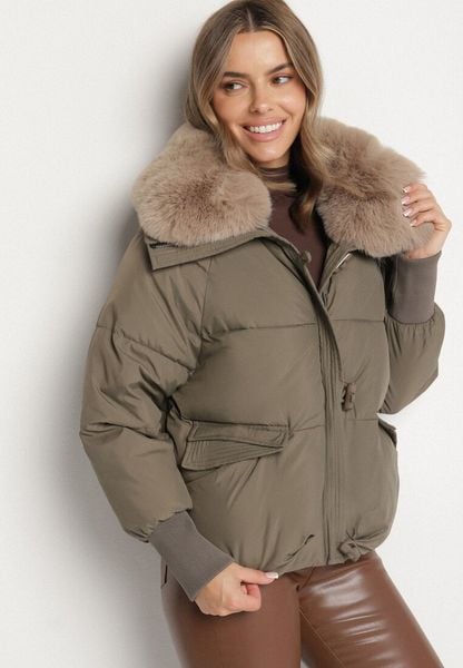Ciemnozielona Pikowana Kurtka z Futrzanym Kołnierzem z Możliwością Odpięcia Malatila
