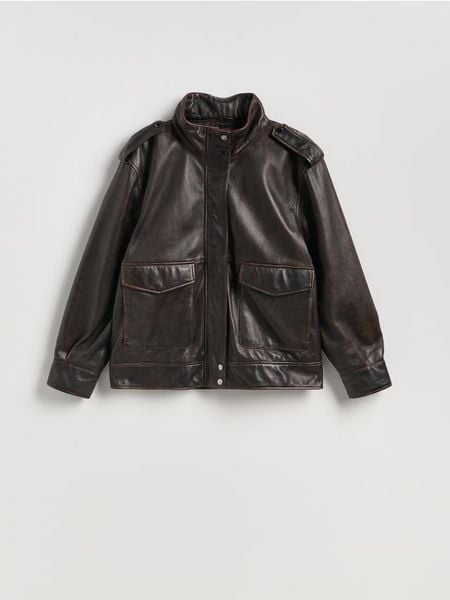 Kurtka o swobodnym fasonie, wykonana ze skóry naturalnej.