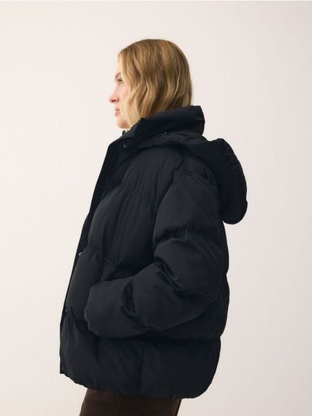 Kurtka o swobodnym fasonie, wykonana z pikowanej tkaniny z wypełnieniem.