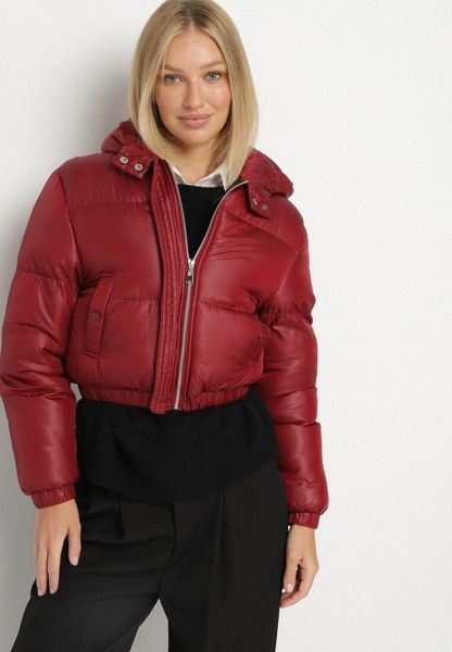 Bordowa Kurtka Pikowana o Krótkim Fasonie z Kapturem Tinthella