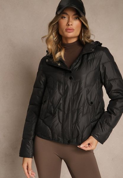 Czarna Kurtka Przejściowa z Kapturem w Oryginalne Pikowane Przeszycia Arivitta