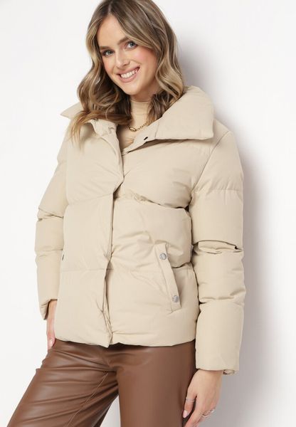 Jasnobeżowa Kurtka Pikowana z Kołnierzem Beatsarda