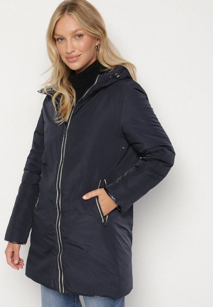 Granatowa Pikowana Kurtka Dwustronna z Kapturem Alarrise