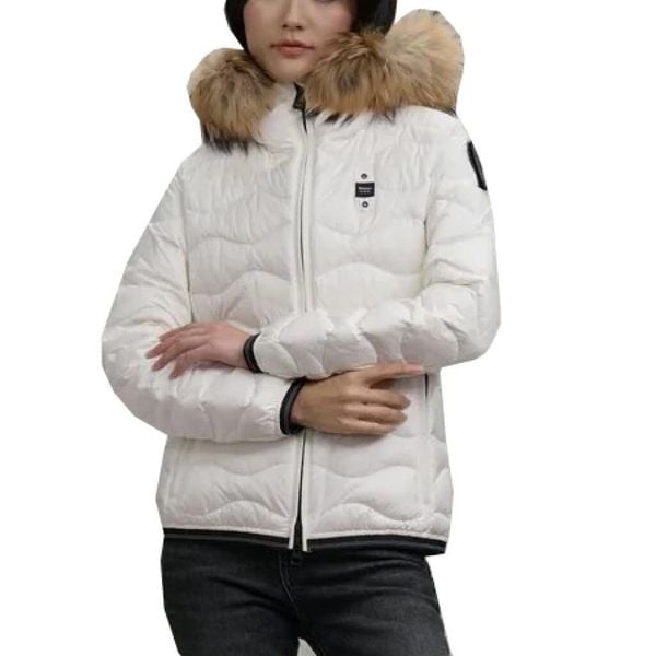 BLAUER Puchowa kurtka ecru damska z kapturem Claudia fashion down jacket with hood, Rozmiar M