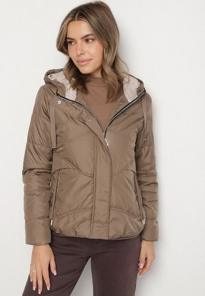 Brązowa Kurtka z Pikowanymi Przeszyciami i Kapturem Zdobiona Sznurkami Evivienne