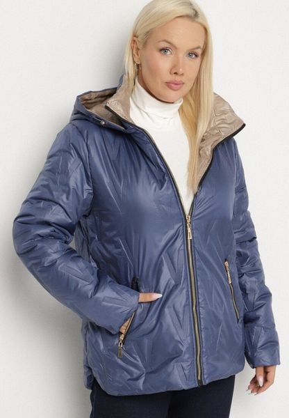 Niebieska Pikowana Kurtka o Prostym Kroju z Kapturem ze Ściągaczami Falesaa
