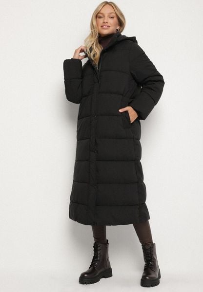 Czarna Długa Pikowana Kurtka z Kapturem Afarriva