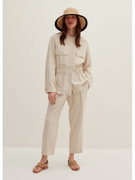 – z dodatkiem lnu- kołnierz: kent- zapięcie: kryty zamek błyskawiczny- zakończenie rękawów: guzik- kieszenie piersiowe: 2- talia: z elastyczną wstawką- krój: prosty- look: jednokolorowy
