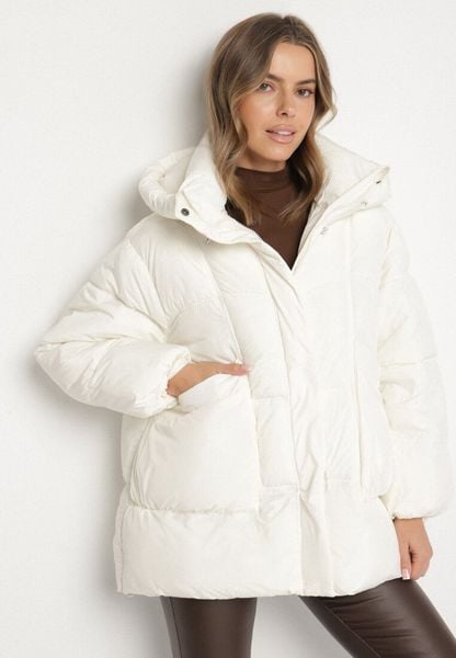 Biała Pikowana Kurtka o Kroju Oversize z Kapturem Galandia