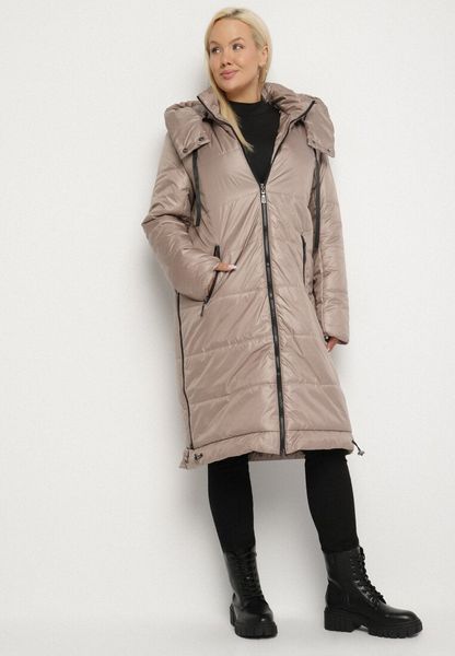Ciemnobeżowa Kurtka Pikowana z Odpinanym Kapturem i Ściągaczami po Bokach Nusarianis