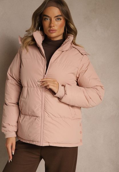 Różowa Pikowana Kurtka z Odpinanym Kapturem Lucane
