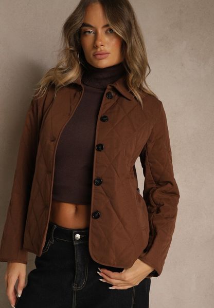 Brązowa Koszulowa Kurtka Ozdobiona Pikowaniem i Pagonami Avadvira