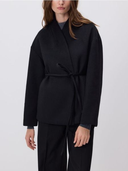 Kurtka o prostym kroju, wykonana z tkaniny z wełną.