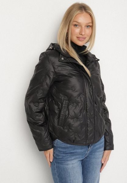 Czarna Przejściowa Kurtka z Geometrycznym Pikowaniem i Kapturem Arevitta