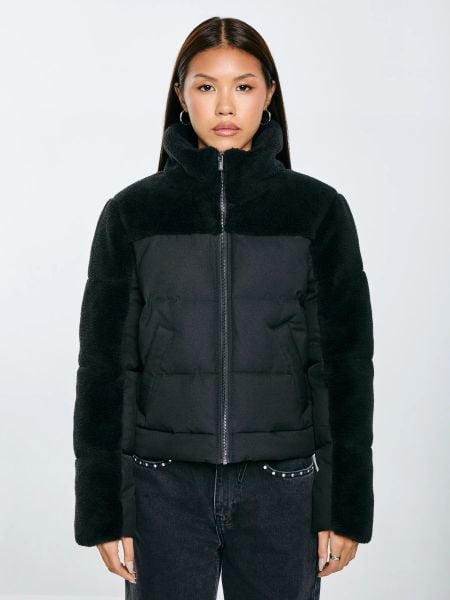 Kurtka damska pudełkowa z futerkiem czarna Salbatora 906