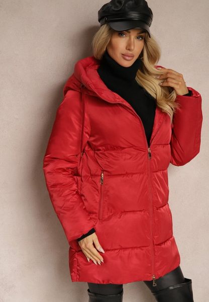 Czerwona Pikowana Kurtka o Długim Kroju z Kapturem Toriola