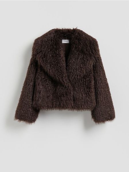 Kurtka o regularnym kroju, wykonana ze sztucznego futerka.