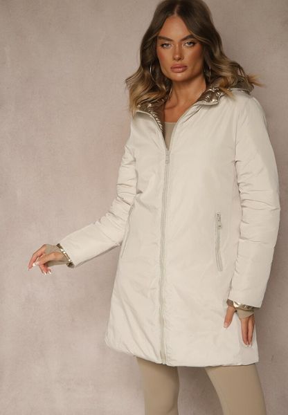 Jasnobeżowa Dwustronna Kurtka z Kapturem i Pikowanymi Przeszyciami Alirrise