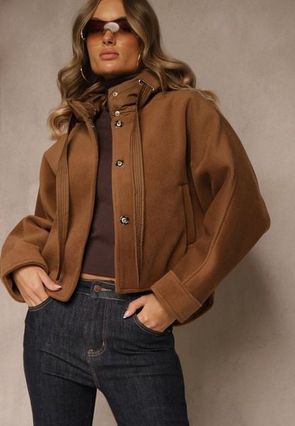 Brązowa Nietoperzowa Kurtka Przejściowa z Kapturem Amiree