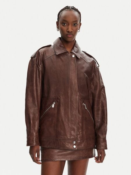 PINKO Kurtka skórzana Fever 105012 A2I1 Brązowy Regular Fit
