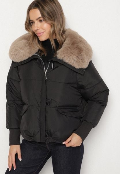 Czarna Pikowana Kurtka z Futrzanym Kołnierzem z Możliwością Odpięcia Malatila