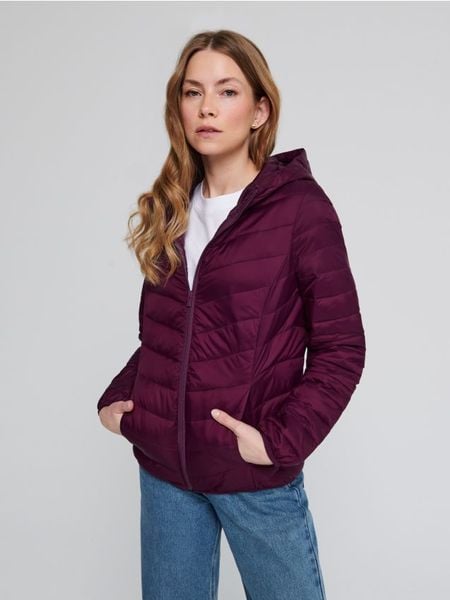 Sinsay – Pikowana kurtka z kapturem – bordowy –