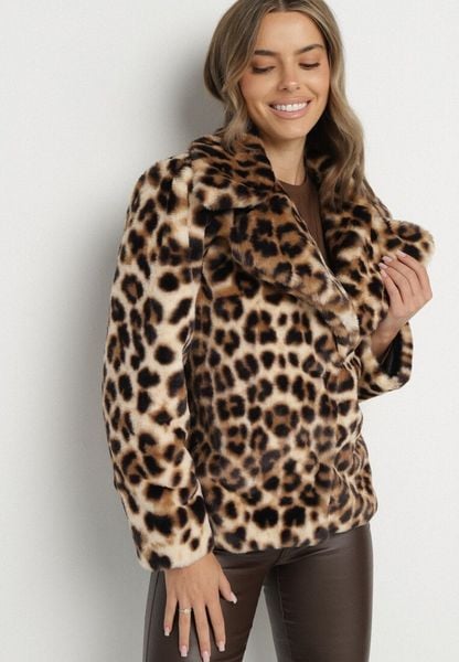 Panterkowa Krótka Kurtka Futerko z Szerokim Kołnierzem Zenivra