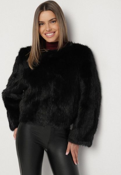 Czarna Futerkowa Kurtka o Prostym Kroju z Kieszeniami Awilise