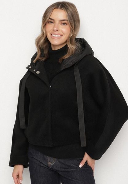 Czarna Przejściowa Kurtka z Rękawami Typu Nietoperz i Kapturem Alinee