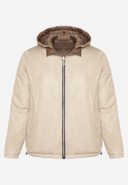 Beżowo-Brązowa Pikowana Kurtka o Dwustronnym Kroju z Odpinanym Kapturem Zeorina