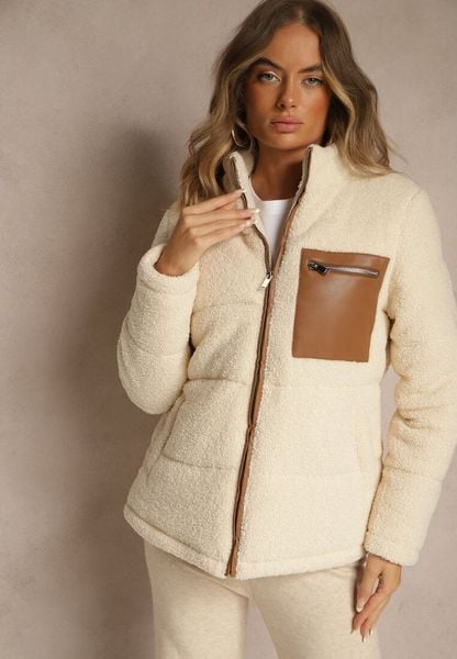 Beżowa Pikowana Kurtka z Futerkiem Teddy Olenesia