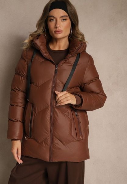 Brązowa Kurtka Pikowana z Kapturem i Sznurkami Oleanesa