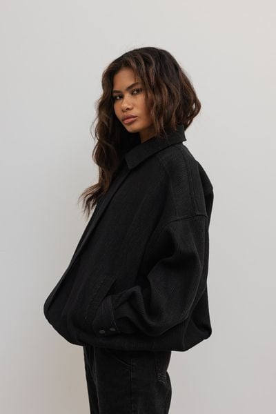 Bawełniana kurtka o strukturze prążka w kolorze BLACK – BARKEL