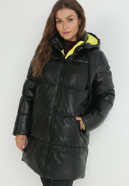 Czarno-Żółta Kurtka Pikowana z Imitacji Skóry Seoree