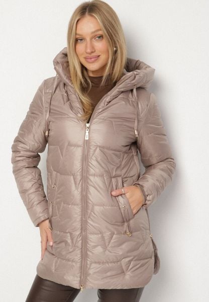 Ciemnobeżowa Przejściowa Kurtka z Pikowanymi Przeszyciami Kapturem i Suwakami Taranessa