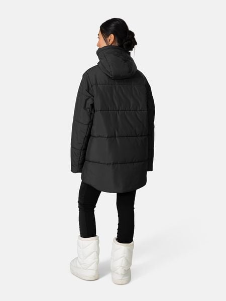 – z dodatkiem poliestru pochodzącego z recyklingu- wodoodporność- właściwości termoizolacyjne- kaptur: tak- zapięcie: suwak- krój: luźny- look: jednokolorowy
