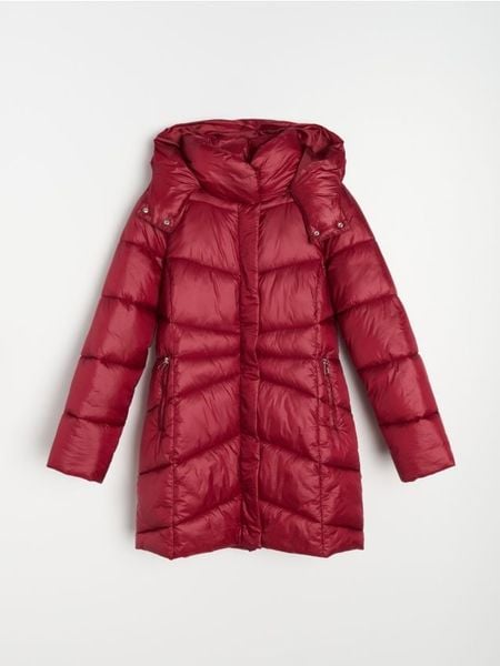 Sinsay – Długa pikowana kurtka z odpinanym kapturem – fioletowy –