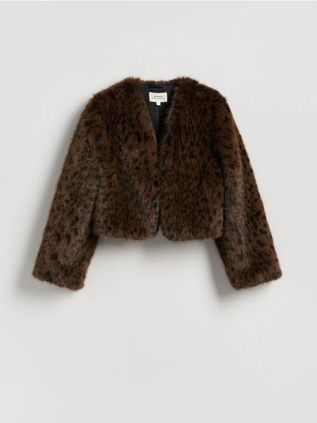 Kurtka o swobodnym kroju, wykonana z imitacji futra.