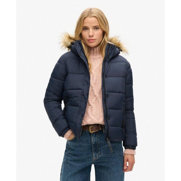 Krótka kurtka z kapturem z futerka sztucznego SUPERDRY