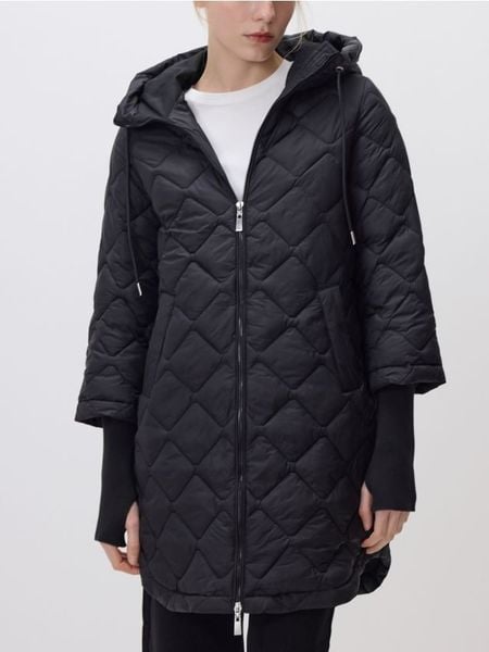 Kurtka o dłuższym kroju, wykonana z pikowanej tkaniny z ociepleniem.