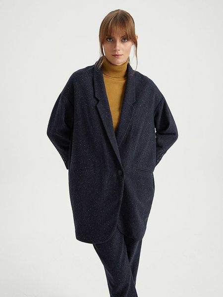 – z dodatkiem wełny- kołnierzyk: z klapami- zapięcie: guzik- zakończenie rękawów: mankiet na guzik- kieszenie: wpuszczane- detale: nakładane rękawki- krój: prosty- wzór: melanżowyWskazówka: Na metkach odzieży tej marki znajdują się rozmiary francuskie. Rozmiarówka została przez nas przeliczona. Podane do wyboru warianty rozmiarów odpowiadają standardowym europejskim rozmiarom konfekcji. Prosimy zapoznać się z zamieszczonym objaśnieniem rozmiarów: