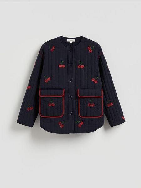 Bawełniana kurtka z haftem – granatowy