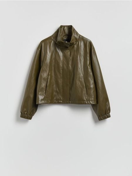 Kurtka o oversizowym kroju, wykonana z gładkiej tkaniny z imitacji skóry.
