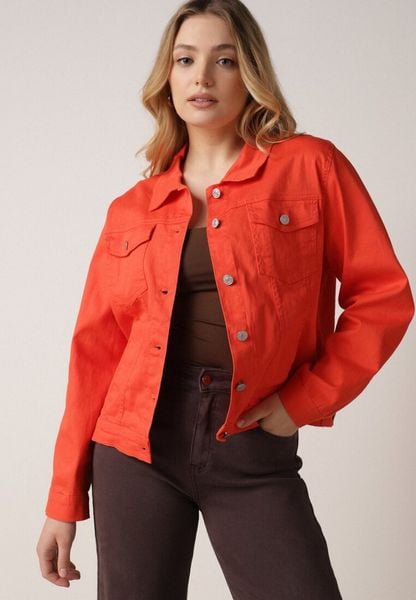 Pomarańczowa Bawełniana Kurtka Jeansowa Perimea