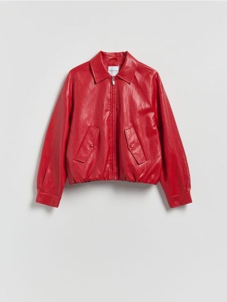 Kurtka o kroju bomberki, wykonana z imitacji skóry.