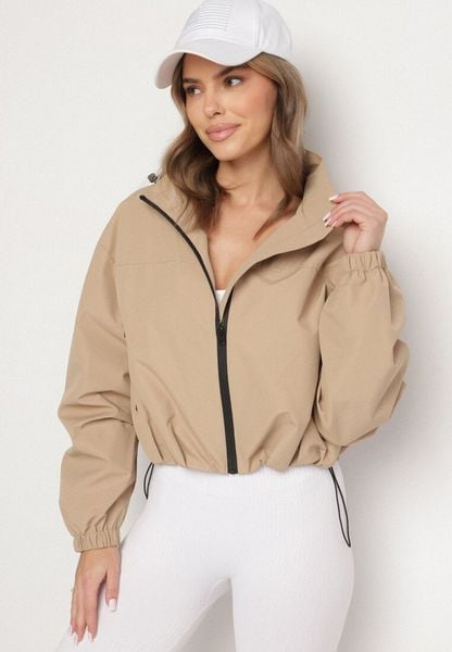 Ciemnobeżowa Kurtka Wiatrówka o Kroju Oversize Natilessa
