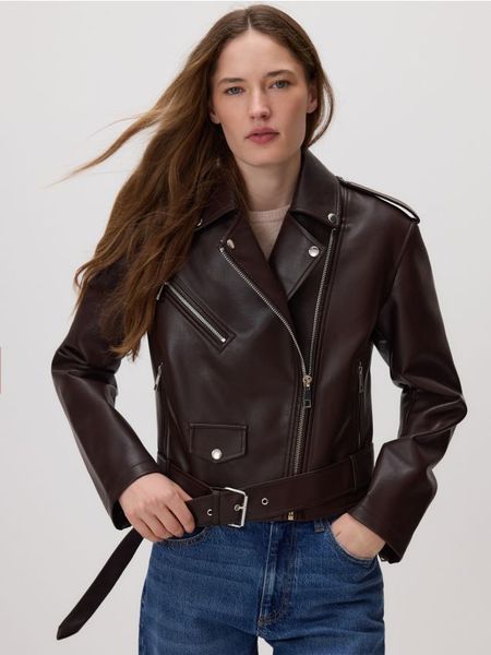 Kurtka o prostym kroju, wykonana z imitacji skóry.