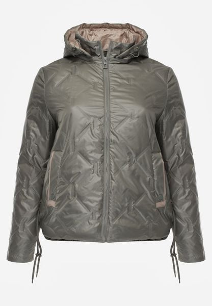 Zielona Dwustronna Kurtka z Pikowanymi Przeszyciami i Odpinanym Kapturem Zelirelle