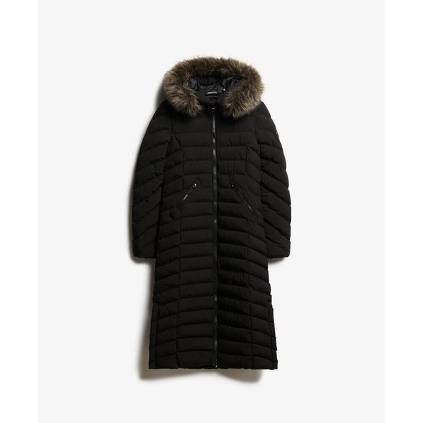 Długa kurtka z kapturem z sztucznego futra dla kobiet Superdry Fuji