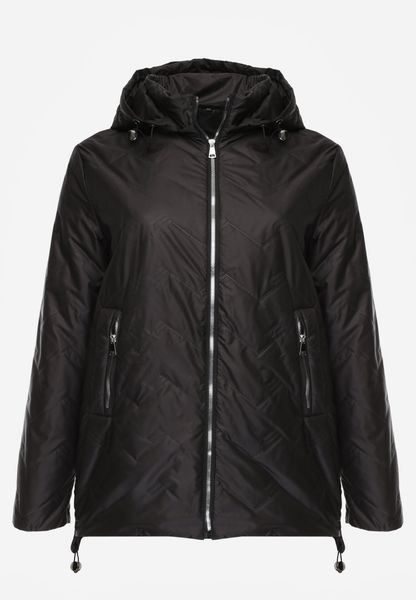 Czarna Przejściowa Pikowana Kurtka z Odpinanym Kapturem Nevistta
